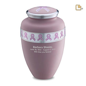 Adorned with signature Pink Breast Cancer Awareness ribbons, this beautiful pink adult urn is a wonderful way to help raise awareness of the disease as well as honor the memory of a loved one.