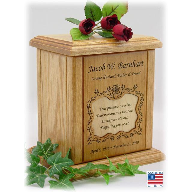 {"id":587523522623,"title":"Recessed Poem Wood Cremation Urns","handle":"recessed-poem-wood-cremation-urns","description":"\u003cmeta charset=\"utf-8\"\u003e\u003cspan\u003eRemembering the one you love with a wood recessed poem urn. These wood urns have a beautiful poem engraved on a recessed wood. This urn is crafted with pride in the USA, made of solid wood and has an wood recessed piece with a poem engraved into the wooden urn. These Recessed Poem Wood Cremation Urns can be engraved with the name, sentiment and dates.\u003c\/span\u003e\u003cbr\u003e\u003cbr\u003e\u003cspan\u003eRemains are loaded through the bottom with the removal of 4 to 8 (depending on urn size) #2 Phillips \/Square Head screws. A 2- mil. poly liner is included with each urn to place the cremains into before placing inside the urn.\u003c\/span\u003e\u003cbr\u003e\u003cbr\u003e\u003cstrong\u003ePlease note that each urn is completed as ordered due to their personalized nature. The manufacturing process and engraving takes 4-5 business days to complete. We thank you for your patience during this time.\u003c\/strong\u003e\u003cbr\u003e\u003cbr\u003e\u003cbr\u003e\u003cspan\u003eKeepsake 6-5\/8\" X 5-1\/8\" X 6-1\/2\", capacity 50\" cubic inches, price \u003cstrong\u003e$219\u003c\/strong\u003e\u003c\/span\u003e\u003cbr\u003e\u003cbr\u003e\u003cspan\u003eSmall 8-1\/8\" X 5-5\/8\" X 8-1\/2\", capacity 116 cubic inches, price \u003cstrong\u003e$279\u003c\/strong\u003e\u003c\/span\u003e\u003cbr\u003e\u003cbr\u003e\u003cspan\u003eAdult 10-1\/8\" X 5-5\/8\" X 10-1\/2\", capacity 202 cubic inches, price \u003cstrong\u003e$334\u003c\/strong\u003e\u003c\/span\u003e\u003cbr\u003e\u003cbr\u003e\u003cspan\u003eCompanion 14-5\/8\" X 7-1\/8\" X 9-1\/2\", capacity 432 cubic inches, price \u003cstrong\u003e$504\u003c\/strong\u003e\u003c\/span\u003e","published_at":"2018-04-02T18:56:42-07:00","created_at":"2018-04-02T18:56:42-07:00","vendor":"Urns.com","type":"Recessed Poem Wood Urns","tags":["$500 and more","100-250","250-500","adult-urns","Between $200 and $500","companion-urns","customization","eng-22-35-35","material-wood","over-500"],"price":21900,"price_min":21900,"price_max":50400,"available":true,"price_varies":true,"compare_at_price":null,"compare_at_price_min":0,"compare_at_price_max":0,"compare_at_price_varies":false,"variants":[{"id":7195050344511,"title":"If Tears... \/ Keepsake","option1":"If Tears...","option2":"Keepsake","option3":null,"sku":"udc-3298-01","requires_shipping":true,"taxable":true,"featured_image":null,"available":true,"name":"Recessed Poem Wood Cremation Urns - If Tears... \/ Keepsake","public_title":"If Tears... \/ Keepsake","options":["If Tears...","Keepsake"],"price":21900,"weight":0,"compare_at_price":null,"inventory_management":null,"barcode":null,"requires_selling_plan":false,"selling_plan_allocations":[],"quantity_rule":{"min":1,"max":null,"increment":1}},{"id":7195050377279,"title":"If Tears... \/ Small","option1":"If Tears...","option2":"Small","option3":null,"sku":"udc-3298-02","requires_shipping":true,"taxable":true,"featured_image":null,"available":true,"name":"Recessed Poem Wood Cremation Urns - If Tears... \/ Small","public_title":"If Tears... \/ Small","options":["If Tears...","Small"],"price":27900,"weight":0,"compare_at_price":null,"inventory_management":null,"barcode":null,"requires_selling_plan":false,"selling_plan_allocations":[],"quantity_rule":{"min":1,"max":null,"increment":1}},{"id":7195050410047,"title":"If Tears... \/ Adult","option1":"If Tears...","option2":"Adult","option3":null,"sku":"udc-3298-03","requires_shipping":true,"taxable":true,"featured_image":null,"available":true,"name":"Recessed Poem Wood Cremation Urns - If Tears... \/ Adult","public_title":"If Tears... \/ Adult","options":["If Tears...","Adult"],"price":33400,"weight":0,"compare_at_price":null,"inventory_management":null,"barcode":null,"requires_selling_plan":false,"selling_plan_allocations":[],"quantity_rule":{"min":1,"max":null,"increment":1}},{"id":7195050442815,"title":"If Tears... \/ Companion","option1":"If Tears...","option2":"Companion","option3":null,"sku":"udc-3298-04","requires_shipping":true,"taxable":true,"featured_image":null,"available":true,"name":"Recessed Poem Wood Cremation Urns - If Tears... \/ Companion","public_title":"If Tears... \/ Companion","options":["If Tears...","Companion"],"price":50400,"weight":0,"compare_at_price":null,"inventory_management":null,"barcode":null,"requires_selling_plan":false,"selling_plan_allocations":[],"quantity_rule":{"min":1,"max":null,"increment":1}},{"id":7195050475583,"title":"Forever In... \/ Keepsake","option1":"Forever In...","option2":"Keepsake","option3":null,"sku":"udc-3298-05","requires_shipping":true,"taxable":true,"featured_image":null,"available":true,"name":"Recessed Poem Wood Cremation Urns - Forever In... \/ Keepsake","public_title":"Forever In... \/ Keepsake","options":["Forever In...","Keepsake"],"price":21900,"weight":0,"compare_at_price":null,"inventory_management":null,"barcode":null,"requires_selling_plan":false,"selling_plan_allocations":[],"quantity_rule":{"min":1,"max":null,"increment":1}},{"id":7195050508351,"title":"Forever In... \/ Small","option1":"Forever In...","option2":"Small","option3":null,"sku":"udc-3298-06","requires_shipping":true,"taxable":true,"featured_image":null,"available":true,"name":"Recessed Poem Wood Cremation Urns - Forever In... \/ Small","public_title":"Forever In... \/ Small","options":["Forever In...","Small"],"price":27900,"weight":0,"compare_at_price":null,"inventory_management":null,"barcode":null,"requires_selling_plan":false,"selling_plan_allocations":[],"quantity_rule":{"min":1,"max":null,"increment":1}},{"id":7195050541119,"title":"Forever In... \/ Adult","option1":"Forever In...","option2":"Adult","option3":null,"sku":"udc-3298-07","requires_shipping":true,"taxable":true,"featured_image":null,"available":true,"name":"Recessed Poem Wood Cremation Urns - Forever In... \/ Adult","public_title":"Forever