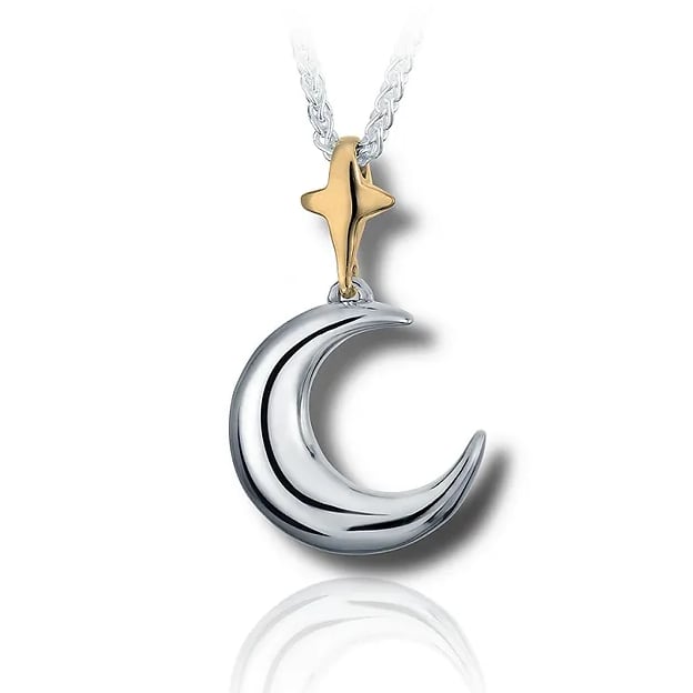 {"id":7666937266239,"title":"Moon and Star 2 tone Cremation Jewelry","handle":"moon-and-star-2-tone-cremation-jewelry","description":"\u003cp\u003eCapture the celestial beauty of your loved one with our Moon and Star 2 tone Cremation Jewelry. This keepsake for cremains features a half crescent moon and star design in Sterling Silver and Yellow Gold, sealed with hand made screws. A meaningful gift from the sky, providing comforting peace through this stunning piece of jewelry.\u003c\/p\u003e\n\u003cp\u003eNo need to worry about getting your pendant wet but no jewelry should ever be worn in a hot tub due to the harsh chemicals.\u003c\/p\u003e\n\u003cul\u003e\n\u003cli\u003eComes with a 18 inch Italian Sterling Silver Franco style Chain measuring 1.5mm thick. \u003cspan lang=\"en\" class=\"HwtZe\"\u003e\u003cspan class=\"jCAhz ChMk0b\"\u003e\u003cspan class=\"ryNqvb\"\u003eYou can also choose between these other 2 sizes: 20 inch and 24 inch.\u003c\/span\u003e\u003c\/span\u003e\u003c\/span\u003e\u003cbr\u003e\n\u003c\/li\u003e\n\u003cli\u003eIncludes a Sterling Silver Scoop to help fill your pendant.\u003c\/li\u003e\n\u003cli\u003eDimensions: 30mm high x 20mm wide x 8mm deep.\u003c\/li\u003e\n\u003c\/ul\u003e","published_at":"2025-01-08T18:59:21-08:00","created_at":"2024-12-16T18:45:08-08:00","vendor":"Urns.com","type":"Keepsakes and Pendant","tags":["250-500","Between $200 and $500","cremation jewelry for women","cremation-jewelry","material-sterling-silver","theme-nature"],"price":43900,"price_min":43900,"price_max":43900,"available":true,"price_varies":false,"compare_at_price":null,"compare_at_price_min":0,"compare_at_price_max":0,"compare_at_price_varies":false,"variants":[{"id":41356225151039,"title":"18 inch","option1":"18 inch","option2":null,"option3":null,"sku":"UDC-5685","requires_shipping":true,"taxable":true,"featured_image":{"id":32846946467903,"product_id":7666937266239,"position":1,"created_at":"2024-12-16T18:58:07-08:00","updated_at":"2025-05-16T16:30:45-07:00","alt":null,"width":624,"height":624,"src":"\/\/www.urns.com\/cdn\/shop\/files\/UDC-5685.jpg?v=1747438245","variant_ids":[41356225151039,41356225183807,41356225216575]},"available":true,"name":"Moon and Star 2 tone Cremation Jewelry - 18 inch","public_title":"18 inch","options":["18 inch"],"price":43900,"weight":0,"compare_at_price":null,"inventory_management":null,"barcode":null,"featured_media":{"alt":null,"id":25503167905855,"position":1,"preview_image":{"aspect_ratio":1.0,"height":624,"width":624,"src":"\/\/www.urns.com\/cdn\/shop\/files\/UDC-5685.jpg?v=1747438245"}},"requires_selling_plan":false,"selling_plan_allocations":[],"quantity_rule":{"min":1,"max":null,"increment":1}},{"id":41356225183807,"title":"20 inch","option1":"20 inch","option2":null,"option3":null,"sku":"UDC-5685-01","requires_shipping":true,"taxable":true,"featured_image":{"id":32846946467903,"product_id":7666937266239,"position":1,"created_at":"2024-12-16T18:58:07-08:00","updated_at":"2025-05-16T16:30:45-07:00","alt":null,"width":624,"height":624,"src":"\/\/www.urns.com\/cdn\/shop\/files\/UDC-5685.jpg?v=1747438245","variant_ids":[41356225151039,41356225183807,41356225216575]},"available":true,"name":"Moon and Star 2 tone Cremation Jewelry - 20 inch","public_title":"20 inch","options":["20 inch"],"price":43900,"weight":0,"compare_at_price":null,"inventory_management":null,"barcode":null,"featured_media":{"alt":null,"id":25503167905855,"position":1,"preview_image":{"aspect_ratio":1.0,"height":624,"width":624,"src":"\/\/www.urns.com\/cdn\/shop\/files\/UDC-5685.jpg?v=1747438245"}},"requires_selling_plan":false,"selling_plan_allocations":[],"quantity_rule":{"min":1,"max":null,"increment":1}},{"id":41356225216575,"title":"24 inch","option1":"24 inch","option2":null,"option3":null,"sku":"UDC-5685-02","requires_shipping":true,"taxable":true,"featured_image":{"id":32846946467903,"product_id":7666937266239,"position":1,"created_at":"2024-12-16T18:58:07-08:00","updated_at":"2025-05-16T16:30:45-07:00","alt":null,"width":624,"height":624,"src":"\/\/www.urns.com\/cdn\/shop\/files\/UDC-5685.jpg?v=1747438245","variant_ids":[41356225151039,41356225183807,41356225216575]},"available":true,"name":"Moon and Star 2 tone Cremation Jewelry - 24 inch","public_title":"24 inch","options":["24 inch"],"price":43900,"weight":0,"compare_at_price":null,"inventory_management":null,"barcode":null,"featured_media":{"alt":null,"id":25503167905855,"position":1,"preview_image":{"aspect_ratio":1.0,"height":624,"width":624,"src":"\/\/www.urns.com\/cdn\/shop\/files\/UDC-5685.jpg?v=1747438245"}},"requires_selling_plan":false,"selling_plan_allocations":[],"quantity_rule":{"min":1,"max":null,"increment":1}}],"images":["\/\/www.urns.com\/cdn\/shop\/files\/UDC-5685.jpg?v=1747438245"],"featured_image":"\/\/www.urns.com\/cdn\/shop\/files\/UDC-5685.jpg?v=1747438245","options":["Chain size"],"media":[{"alt":null,"id":25503167905855,"position":1,"preview_image":{"aspect_ratio":1.0,"height":624,"width":624,"src":"\/\/www.urns.com\/cdn\/shop\/files\/UDC-5685.jpg?v=1747438245"},"aspect_ratio":1.0,"height":624,"media_type":"image","src":"\/\/www.urns.com\/cdn\/shop\/files\/UDC-5685.jpg?v=1747438245","width":624}],"requires_selling_plan":false,"selling_plan_groups":[],"content":"\u003cp\u003eCapture the celestial beauty of your loved one with our Moon and Star 2 tone Cremation Jewelry. This keepsake for cremains features a half crescent moon and star design in Sterling Silver and Yellow Gold, sealed with hand made screws. A meaningful gift from the sky, providing comforting peace through this stunning piece of jewelry.\u003c\/p\u003e\n\u003cp\u003eNo need to worry about getting your pendant wet but no jewelry should ever be worn in a hot tub due to the harsh chemicals.\u003c\/p\u003e\n\u003cul\u003e\n\u003cli\u003eComes with a 18 inch Italian Sterling Silver Franco style Chain measuring 1.5mm thick. \u003cspan lang=\"en\" class=\"HwtZe\"\u003e\u003cspan class=\"jCAhz ChMk0b\"\u003e\u003cspan class=\"r