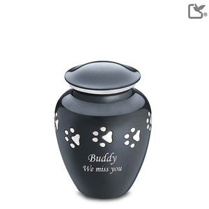 {"id":587327963199,"title":"Classic Midnight Pet Urn","handle":"classic-midnight-pet-urn-small","description":"\u003cp\u003eHonor the life of your beloved pet with this stunning Classic Midnight Black Pet Urn. Silver hand engraved paw prints trail across the top of this urn set against a black background.\u003c\/p\u003e\n\u003cp\u003eMade of solid brass and protected by a gloss coat, this pet cremation urn looks beautiful on display and comes in three different sizes:\u003c\/p\u003e\n\u003cul\u003e\n\u003cli\u003e\n\u003cstrong\u003eSmall Urn Dimensions:\u003c\/strong\u003e\u003cbr\u003e\n\u003cul\u003e\n\u003cli\u003e\n\u003cspan\u003eL 4.33 Inch W 4.33 Inch H 6.1 Inch\u003c\/span\u003e, Capacity: 55 cubic inches\u003c\/li\u003e\n\u003c\/ul\u003e\n\u003c\/li\u003e\n\u003cli\u003e\n\u003cstrong\u003eMedium Urn Dimensions:\u003c\/strong\u003e\u003cbr\u003e\n\u003cul\u003e\n\u003cli\u003e\n\u003cspan\u003eL 5.12 Inch W 5.12 Inch H 7.09 Inch\u003c\/span\u003e, Capacity: 89 cubic inches\u003c\/li\u003e\n\u003c\/ul\u003e\n\u003c\/li\u003e\n\u003cli\u003e\n\u003cstrong\u003eLarge urn Dimensions:\u003c\/strong\u003e \u003cbr\u003e\n\u003cul\u003e\n\u003cli\u003e\n\u003cspan\u003eL 5.91 Inch W 5.91 Inch H 8.07 Inch\u003c\/span\u003e, Capacity: 129 cubic inches\u003c\/li\u003e\n\u003c\/ul\u003e\n\u003c\/li\u003e\n\u003c\/ul\u003e\n\u003cul\u003e\n\u003cli\u003ePersonalize your urn with up to 3 lines of engraving:\u003c\/li\u003e\n\u003c\/ul\u003e\n\u003cdiv style=\"padding-left: 30px;\"\u003e\n\u003col\u003e\n\u003cli\u003e\u003cstrong\u003eSmall urn will take only one line of text with 10 characters.\u003c\/strong\u003e\u003c\/li\u003e\n\u003cli\u003e\u003cstrong\u003eMedium urn will take 2 lines of text, up to 20 characters.\u003c\/strong\u003e\u003c\/li\u003e\n\u003cli\u003e\u003cstrong\u003eLarge urn will take 2 lines of text, up to 30 characters.\u003c\/strong\u003e\u003c\/li\u003e\n\u003c\/ol\u003e\n\u003c\/div\u003e","published_at":"2018-04-02T20:02:39-04:00","created_at":"2018-04-02T20:02:39-04:00","vendor":"Urns.com","type":"Pet Urns","tags":["100-250","50-100","Between $100 and $200","Between $50 and $100","cat urns","Classic Paw Prints Pet Urns","customization","dog urns","Love Urns 2-30","material-solid-brass","pet-products","pet-urns"],"price":7900,"price_min":7900,"price_max":15800,"available":true,"price_varies":true,"compare_at_price":null,"compare_at_price_min":0,"compare_at_price_max":0,"compare_at_price_varies":false,"variants":[{"id":7194069925951,"title":"Small \/ No","option1":"Small","option2":"No","option3":null,"sku":"udc-4013","requires_shipping":true,"taxable":true,"featured_image":{"id":11649525547071,"product_id":587327963199,"position":3,"created_at":"2019-08-05T19:56:49-04:00","updated_at":"2025-05-16T21:38:33-04:00","alt":null,"width":595,"height":595,"src":"\/\/www.urns.com\/cdn\/shop\/products\/udc-4013a.jpg?v=1747445913","variant_ids":[7194069925951]},"available":true,"name":"Classic Midnight Pet Urn - Small \/ No","public_title":"Small \/ No","options":["Small","No"],"price":7900,"weight":0,"compare_at_price":null,"inventory_management":null,"barcode":null,"featured_media":{"alt":null,"id":3949177667647,"position":3,"preview_image":{"aspect_ratio":1.0,"height":595,"width":595,"src":"\/\/www.urns.com\/cdn\/shop\/products\/udc-4013a.jpg?v=1747445913"}},"requires_selling_plan":false,"selling_plan_allocations":[],"quantity_rule":{"min":1,"max":null,"increment":1}},{"id":14618855440447,"title":"Small \/ Yes","option1":"Small","option2":"Yes","option3":null,"sku":"udc-4013-01","requires_shipping":true,"taxable":true,"featured_image":{"id":31331849240639,"product_id":587327963199,"position":4,"created_at":"2024-03-25T21:38:56-04:00","updated_at":"2025-05-16T21:38:34-04:00","alt":null,"width":624,"height":624,"src":"\/\/www.urns.com\/cdn\/shop\/files\/FONTS-LOVE-URNS_NEW_83b8396d-ee45-42a7-9f27-798f0e07bc05.jpg?v=1747445914","variant_ids":[14618855440447,14618940538943,14618946535487]},"available":true,"name":"Classic Midnight Pet Urn - Small \/ Yes","public_title":"Small \/ Yes","options":["Small","Yes"],"price":12800,"weight":1361,"compare_at_price":null,"inventory_management":null,"barcode":null,"featured_media":{"alt":null,"id":24218891550783,"position":4,"preview_image":{"aspect_ratio":1.0,"height":624,"width":624,"src":"\/\/www.urns.com\/cdn\/shop\/files\/FONTS-LOVE-URNS_NEW_83b8396d-ee45-42a7-9f27-798f0e07bc05.jpg?v=1747445914"}},"requires_selling_plan":false,"selling_plan_allocations":[],"quantity_rule":{"min":1,"max":null,"increment":1}},{"id":13919442141247,"title":"Medium \/ No","option1":"Medium","option2":"No","option3":null,"sku":"udc-4014","requires_shipping":true,"taxable":true,"featured_image":{"id":11649515847743,"product_id":587327963199,"position":2,"created_at":"2019-08-05T19:55:40-04:00","updated_at":"2025-05-16T21:38:33-04:00","alt":null,"width":595,"height":595,"src":"\/\/www.urns.com\/cdn\/shop\/products\/udc-4014a.jpg?v=1747445913","variant_ids":[13919442141247]},"available":true,"name":"Classic Midnight Pet Urn - Medium \/ No","public_title":"Medium \/ No","options":["Medium","No"],"price":8900,"weight":0,"compare_at_price":null,"inventory_management":null,"barcode":null,"featured_media":{"alt":null,"id":3949177012287,"position":2,"preview_image":{"aspect_ratio":1.0,"height":595,"width":595,"src":"\/\/www.urns.com\/cdn\/shop\/products\/udc-4014a.jpg?v=1747445913"}},"requires_selling_plan":false,"selling_plan_allocations":[],"quantity_rule":{"min":1,"max":null,"increment":1}},{"id":14618940538943,"title":"Medium \/ Yes","option1":"Medium","option2":"Yes","option3":null,"sku":"udc-4014-01","requires_shipping":true,"taxable":true,"featured_image":{"id":31331849240639,"product_id":587327963199,"position":4,"created_at":"2024-03-25T21:38:56-04:00","updated_at":"2025-05-16T21:38:34-04:00","alt":null,"width":624,"height":624,"src":"\/\/www.urns.com\/cdn\/shop\/files\/FONTS-LOVE-URNS_NEW_83b8396d-ee45-42a7-9f27-798f0e07bc05.jpg?v=1747445914","variant
