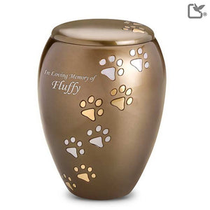 {"id":587328028735,"title":"Majestic Paws Pet Urn","handle":"majestic-paws-small-pet-urn","description":"\u003cp\u003eA sleek and stunning design sets these solid brass pet cremation urns apart from the rest.\u003c\/p\u003e\n\u003cp\u003eA warm bronze background creates the perfect backdrop for alternating silver and gold paw prints trailing up the side of the pet urn and lid.\u003c\/p\u003e\n\u003cp\u003ePart of the Majestic Paws Collection, these urns come in three different sizes and are protected by a gloss coat and would make the perfect memorial for a beloved pet friend.\u003c\/p\u003e\n\u003cul\u003e\n\u003cli\u003e\n\u003cstrong\u003eSmall Urn Dimensions:\u003c\/strong\u003e\u003cbr\u003e\n\u003cul\u003e\n\u003cli\u003e\n\u003cspan\u003eL 4.53 Inch W 4.53 Inch H 5.71 Inch\u003c\/span\u003e, Capacity: 62 cubic inches\u003c\/li\u003e\n\u003c\/ul\u003e\n\u003c\/li\u003e\n\u003cli\u003e\n\u003cstrong\u003eMedium Urn Dimensions:\u003c\/strong\u003e\u003cbr\u003e\n\u003cul\u003e\n\u003cli\u003e\n\u003cspan\u003eL 5.51 Inch W 5.51 Inch H 6.69 Inch\u003c\/span\u003e, Capacity: 101 cubic inches\u003c\/li\u003e\n\u003c\/ul\u003e\n\u003c\/li\u003e\n\u003cli\u003e\n\u003cstrong\u003eLarge urn Dimensions:\u003c\/strong\u003e \u003cbr\u003e\n\u003cul\u003e\n\u003cli\u003e\n\u003cspan\u003eL 5.91 Inch W 5.91 Inch H 7.48 Inch\u003c\/span\u003e, Capacity: 135 cubic inches\u003c\/li\u003e\n\u003c\/ul\u003e\n\u003c\/li\u003e\n\u003c\/ul\u003e\n\u003cul\u003e\u003c\/ul\u003e\n\u003cp\u003ePersonalize your urn with up to 3 lines of engraving, 30 characters per line:\u003c\/p\u003e\n\u003cul\u003e\u003c\/ul\u003e\n\u003col\u003e\n\u003cli\u003e\u003cstrong\u003eSmall urn will take only one line of text with 10 characters each line.\u003c\/strong\u003e\u003c\/li\u003e\n\u003cli\u003e\u003cstrong\u003eMedium urn will take 2 lines of text, up to 20 characters each line.\u003c\/strong\u003e\u003c\/li\u003e\n\u003cli\u003e\u003cstrong\u003eLarge urn will take 3 lines of text, up to 30 characters each line.\u003c\/strong\u003e\u003c\/li\u003e\n\u003c\/ol\u003e","published_at":"2018-04-02T20:02:41-04:00","created_at":"2018-04-02T20:02:41-04:00","vendor":"Urns.com","type":"Pet Urns","tags":["100-250","50-100","Between $100 and $200","Between $50 and $100","cat urns","customization","dog urns","Love Urns 3-30","Majestic Paw Print Pet Urns","material-solid-brass","pet-products","pet-urns"],"price":7900,"price_min":7900,"price_max":15800,"available":true,"price_varies":true,"compare_at_price":null,"compare_at_price_min":0,"compare_at_price_max":0,"compare_at_price_varies":false,"variants":[{"id":7194070089791,"title":"Small \/ No","option1":"Small","option2":"No","option3":null,"sku":"udc-4025","requires_shipping":true,"taxable":true,"featured_image":{"id":4620448137279,"product_id":587328028735,"position":1,"created_at":"2018-12-28T10:34:46-05:00","updated_at":"2025-05-16T21:38:23-04:00","alt":null,"width":595,"height":595,"src":"\/\/www.urns.com\/cdn\/shop\/products\/udc-4025.jpg?v=1747445903","variant_ids":[7194070089791]},"available":true,"name":"Majestic Paws Pet Urn - Small \/ No","public_title":"Small \/ No","options":["Small","No"],"price":7900,"weight":0,"compare_at_price":null,"inventory_management":null,"barcode":null,"featured_media":{"alt":null,"id":3403325964351,"position":1,"preview_image":{"aspect_ratio":1.0,"height":595,"width":595,"src":"\/\/www.urns.com\/cdn\/shop\/products\/udc-4025.jpg?v=1747445903"}},"requires_selling_plan":false,"selling_plan_allocations":[],"quantity_rule":{"min":1,"max":null,"increment":1}},{"id":14637766770751,"title":"Small \/ Yes","option1":"Small","option2":"Yes","option3":null,"sku":"udc-4025-01","requires_shipping":true,"taxable":true,"featured_image":{"id":31344817995839,"product_id":587328028735,"position":5,"created_at":"2024-03-29T21:48:38-04:00","updated_at":"2025-05-16T21:38:25-04:00","alt":null,"width":624,"height":624,"src":"\/\/www.urns.com\/cdn\/shop\/files\/FONTS-LOVE-URNS_NEW_feac9002-24f8-4a14-be51-b7114ee18c92.jpg?v=1747445905","variant_ids":[14637766770751,14637771522111,14637775945791]},"available":true,"name":"Majestic Paws Pet Urn - Small \/ Yes","public_title":"Small \/ Yes","options":["Small","Yes"],"price":12800,"weight":0,"compare_at_price":null,"inventory_management":null,"barcode":null,"featured_media":{"alt":null,"id":24235511906367,"position":5,"preview_image":{"aspect_ratio":1.0,"height":624,"width":624,"src":"\/\/www.urns.com\/cdn\/shop\/files\/FONTS-LOVE-URNS_NEW_feac9002-24f8-4a14-be51-b7114ee18c92.jpg?v=1747445905"}},"requires_selling_plan":false,"selling_plan_allocations":[],"quantity_rule":{"min":1,"max":null,"increment":1}},{"id":13921129726015,"title":"Medium \/ No","option1":"Medium","option2":"No","option3":null,"sku":"udc-4026","requires_shipping":true,"taxable":true,"featured_image":{"id":4620448268351,"product_id":587328028735,"position":2,"created_at":"2018-12-28T10:34:47-05:00","updated_at":"2025-05-16T21:38:24-04:00","alt":null,"width":595,"height":595,"src":"\/\/www.urns.com\/cdn\/shop\/products\/udc-4026_7fc01688-6c37-4748-b3d5-7eb6c12b4a9b.jpg?v=1747445904","variant_ids":[13921129726015]},"available":true,"name":"Majestic Paws Pet Urn - Medium \/ No","public_title":"Medium \/ No","options":["Medium","No"],"price":9400,"weight":0,"compare_at_price":null,"inventory_management":null,"barcode":null,"featured_media":{"alt":null,"id":3403325997119,"position":2,"preview_image":{"aspect_ratio":1.0,"height":595,"width":595,"src":"\/\/www.urns.com\/cdn\/shop\/products\/udc-4026_7fc01688-6c37-4748-b3d5-7eb6c12b4a9b.jpg?v=1747445904"}},"requires_selling_plan":false,"selling_plan_allocations":[],"quantity_rule":{"min":1,"max":null,"increment":1}},{"id":14637771522111,"title":"Medium \/ Yes","option1":"Medium","option2":"Yes","option3":null,"sku":"udc-4026-01","requires_shipping":true,"taxable":true,"featured_image":{"id":31344817995839,"product_id":587328028735,"position":5,"created_at":"2024-03-29T21:48:38-04:00","updated_at":"2025
