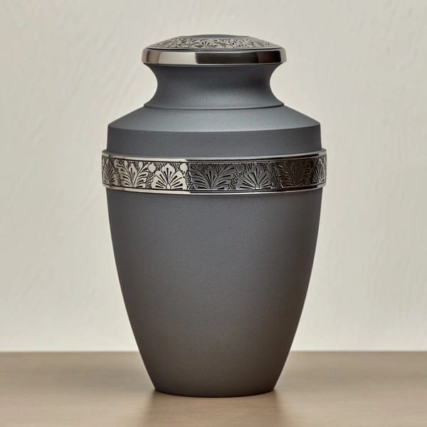 Each color in the Grecian urns collection features a large ash holding urn, and two smaller keepsakes, which can be purchased separately. Some finishes are bold and shiny, while others have the brushed metal look, and both are beautifully crafted with rich attention to detail and quality construction. It is simply a matter of style preference.