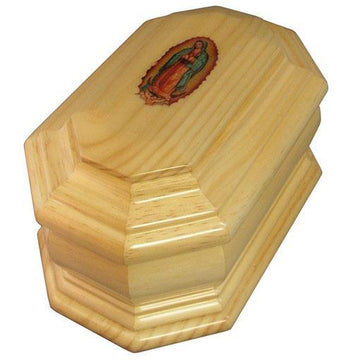 A Lady of Guadalupe wood urn is the perfect memorial to honor the passing of a loved one in your life. Designed from the highest quality wood and emblazoned with a stunning image of Lady Guadalupe, it is the perfect memorial piece. Pay the deepest respect to loved ones that have a strong and devoted religious heritage with the perfect memorial piece for your loved one.