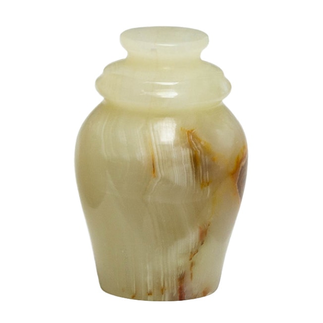 The Natural Onyx Marble Vase Miniature Keepsake is expertly carved from a solid block of durable marble, offering a timeless and elegant way to honor your loved one. Designed to hold a small yet meaningful portion of cremains, this adult urn provides a lasting tribute that can always remain close to your heart.