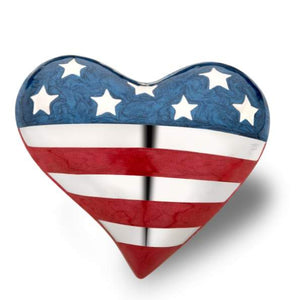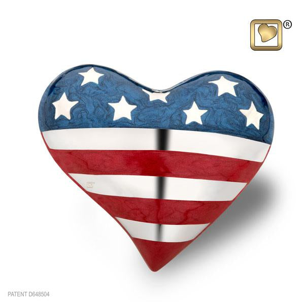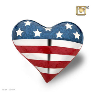 Another member of this Patriotic Collection, the Heart Shaped solid brass keepsake was crafted to keep a portion of the remains of your loved one with a patriotic sentiment.
