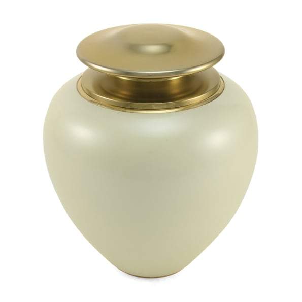 When the time comes to honor your loved one, this solid brass adult urn is a beautiful choice. Manufactured in solid brass, this cremation urn comes in a pearl tone with a gold threaded lid that matches perfectly the finish.