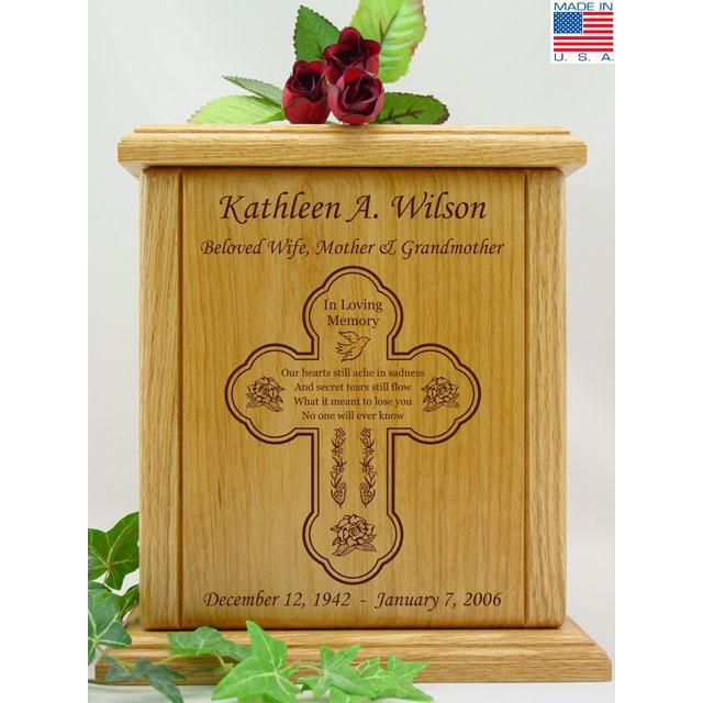 {"id":587491672127,"title":"Cross Losing You Poem Wood Urn","handle":"cross-losing-you-poem-wood-urn","description":"\u003cp\u003eThe Cross Losing You Poem Wood Urn is made of a combination of Red Alder and Red Oak. This wood is a smooth surfaced wood and makes a beautiful background for the engraving of the Cross Losing You Poem artwork for your loved one. Engraving of the name, dates and sentimental phrase are included. The urn is bottom sealed with 4 brass screws and have pads to protect furniture.\u003c\/p\u003e\n\u003cul\u003e\n\u003cli\u003eSize: 10-1\/8\" X 5-5\/8\" X 10-1\/2\", Capacity: 202 cubic inches\u003c\/li\u003e\n\u003c\/ul\u003e","published_at":"2018-04-02T18:43:10-07:00","created_at":"2018-04-02T18:43:10-07:00","vendor":"Urns.com","type":"","tags":["100-250","adult-urns","Between $200 and $500","customization","eng-22-35-35","inspirational-urns","material-wood","Religious Wood Urns","theme-cross"],"price":24900,"price_min":24900,"price_max":24900,"available":true,"price_varies":false,"compare_at_price":null,"compare_at_price_min":0,"compare_at_price_max":0,"compare_at_price_varies":false,"variants":[{"id":7194880704575,"title":"Default Title","option1":"Default Title","option2":null,"option3":null,"sku":"udc-2891","requires_shipping":true,"taxable":true,"featured_image":null,"available":true,"name":"Cross Losing You Poem Wood Urn","public_title":null,"options":["Default Title"],"price":24900,"weight":0,"compare_at_price":null,"inventory_management":"shopify","barcode":null,"requires_selling_plan":false,"selling_plan_allocations":[],"quantity_rule":{"min":1,"max":null,"increment":1}}],"images":["\/\/www.urns.com\/cdn\/shop\/products\/udc-2891.jpg?v=1747442418","\/\/www.urns.com\/cdn\/shop\/products\/udc-2891a.jpg?v=1747442419"],"featured_image":"\/\/www.urns.com\/cdn\/shop\/products\/udc-2891.jpg?v=1747442418","options":["Title"],"media":[{"alt":"Cross Losing You Poem Wood Urn","id":3288491130943,"position":1,"preview_image":{"aspect_ratio":1.0,"height":640,"width":640,"src":"\/\/www.urns.com\/cdn\/shop\/products\/udc-2891.jpg?v=1747442418"},"aspect_ratio":1.0,"height":640,"media_type":"image","src":"\/\/www.urns.com\/cdn\/shop\/products\/udc-2891.jpg?v=1747442418","width":640},{"alt":"Cross Losing You Poem Wood Urn","id":3288491491391,"position":2,"preview_image":{"aspect_ratio":1.0,"height":399,"width":399,"src":"\/\/www.urns.com\/cdn\/shop\/products\/udc-2891a.jpg?v=1747442419"},"aspect_ratio":1.0,"height":399,"media_type":"image","src":"\/\/www.urns.com\/cdn\/shop\/products\/udc-2891a.jpg?v=1747442419","width":399}],"requires_selling_plan":false,"selling_plan_groups":[],"content":"\u003cp\u003eThe Cross Losing You Poem Wood Urn is made of a combination of Red Alder and Red Oak. This wood is a smooth surfaced wood and makes a beautiful background for the engraving of the Cross Losing You Poem artwork for your loved one. Engraving of the name, dates and sentimental phrase are included. The urn is bottom sealed with 4 brass screws and have pads to protect furniture.\u003c\/p\u003e\n\u003cul\u003e\n\u003cli\u003eSize: 10-1\/8\" X 5-5\/8\" X 10-1\/2\", Capacity: 202 cubic inches\u003c\/li\u003e\n\u003c\/ul\u003e"}