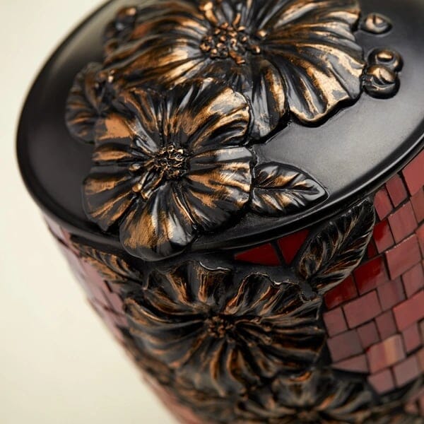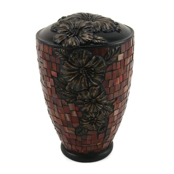 {"id":4158720344127,"title":"Floral Mosaic Hibiscus Adult Urn","handle":"copy-of-floral-mosaic-iris-adult-urn","description":"\u003cp\u003eThis adult urn is manufactured in resin with \u003cspan data-mce-fragment=\"1\"\u003ehand-laid stained-glass mosaic\u003c\/span\u003e, to produce a stunning cremation urn to put your loved one remains.\u003c\/p\u003e\n\u003cp\u003eCrafted by hand with love and care, the Hibiscus adult urn is also a great vase to have it in your house or office. Honor your love done with a beautiful mosaic urn.\u003c\/p\u003e\n\u003cul\u003e\n\u003cli\u003eDimensions: 10.9\" H x 7.6\" D, Capacity: 200 cubic inches\u003c\/li\u003e\n\u003cli\u003eIncluding bag with tie and secured with a threaded bottom closure.\u003c\/li\u003e\n\u003c\/ul\u003e","published_at":"2019-09-20T14:37:40-07:00","created_at":"2019-09-20T14:37:40-07:00","vendor":"Urns.com","type":"Adult Urns","tags":["$500 and more","adult-urns","material-resin","over-500","synthetic","theme-flowers-and-leaves","theme-nature"],"price":54900,"price_min":54900,"price_max":54900,"available":true,"price_varies":false,"compare_at_price":null,"compare_at_price_min":0,"compare_at_price_max":0,"compare_at_price_varies":false,"variants":[{"id":30230679650367,"title":"Default Title","option1":"Default Title","option2":null,"option3":null,"sku":"UDC-4700","requires_shipping":true,"taxable":true,"featured_image":null,"available":true,"name":"Floral Mosaic Hibiscus Adult Urn","public_title":null,"options":["Default Title"],"price":54900,"weight":0,"compare_at_price":null,"inventory_management":null,"barcode":null,"requires_selling_plan":false,"selling_plan_allocations":[],"quantity_rule":{"min":1,"max":null,"increment":1}}],"images":["\/\/www.urns.com\/cdn\/shop\/products\/udc-4700.jpg?v=1747440794","\/\/www.urns.com\/cdn\/shop\/products\/UDC-4700a.jpg?v=1747440797","\/\/www.urns.com\/cdn\/shop\/products\/UDC-4700b.jpg?v=1747440797","\/\/www.urns.com\/cdn\/shop\/products\/UDC-4700c.jpg?v=1747440798"],"featured_image":"\/\/www.urns.com\/cdn\/shop\/products\/udc-4700.jpg?v=1747440794","options":["Title"],"media":[{"alt":"mosaic urn","id":183567941695,"position":1,"preview_image":{"aspect_ratio":1.0,"height":595,"width":595,"src":"\/\/www.urns.com\/cdn\/shop\/products\/udc-4700.jpg?v=1747440794"},"aspect_ratio":1.0,"height":595,"media_type":"image","src":"\/\/www.urns.com\/cdn\/shop\/products\/udc-4700.jpg?v=1747440794","width":595},{"alt":null,"id":23201126252607,"position":2,"preview_image":{"aspect_ratio":1.0,"height":600,"width":600,"src":"\/\/www.urns.com\/cdn\/shop\/products\/UDC-4700a.jpg?v=1747440797"},"aspect_ratio":1.0,"height":600,"media_type":"image","src":"\/\/www.urns.com\/cdn\/shop\/products\/UDC-4700a.jpg?v=1747440797","width":600},{"alt":null,"id":23201126318143,"position":3,"preview_image":{"aspect_ratio":1.0,"height":600,"width":600,"src":"\/\/www.urns.com\/cdn\/shop\/products\/UDC-4700b.jpg?v=1747440797"},"aspect_ratio":1.0,"height":600,"media_type":"image","src":"\/\/www.urns.com\/cdn\/shop\/products\/UDC-4700b.jpg?v=1747440797","width":600},{"alt":null,"id":23201126350911,"position":4,"preview_image":{"aspect_ratio":1.0,"height":600,"width":600,"src":"\/\/www.urns.com\/cdn\/shop\/products\/UDC-4700c.jpg?v=1747440798"},"aspect_ratio":1.0,"height":600,"media_type":"image","src":"\/\/www.urns.com\/cdn\/shop\/products\/UDC-4700c.jpg?v=1747440798","width":600}],"requires_selling_plan":false,"selling_plan_groups":[],"content":"\u003cp\u003eThis adult urn is manufactured in resin with \u003cspan data-mce-fragment=\"1\"\u003ehand-laid stained-glass mosaic\u003c\/span\u003e, to produce a stunning cremation urn to put your loved one remains.\u003c\/p\u003e\n\u003cp\u003eCrafted by hand with love and care, the Hibiscus adult urn is also a great vase to have it in your house or office. Honor your love done with a beautiful mosaic urn.\u003c\/p\u003e\n\u003cul\u003e\n\u003cli\u003eDimensions: 10.9\" H x 7.6\" D, Capacity: 200 cubic inches\u003c\/li\u003e\n\u003cli\u003eIncluding bag with tie and secured with a threaded bottom closure.\u003c\/li\u003e\n\u003c\/ul\u003e"}