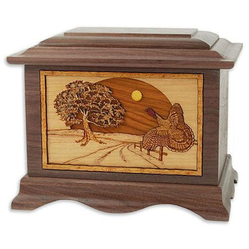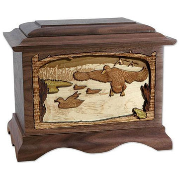 Our Three Dimensional Inlay Wood Cremation Urns are some of the most gorgeous and personal wood urns you will find for your loved one. Among the most popular of our selections, these going home urns feature beautiful scenes that are sure to capture the spirit of your loved one, particularly those that had an avid interest in nature and wildlife, sports, and other special interests.