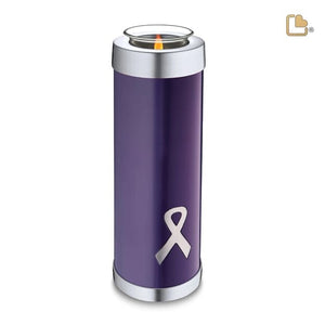 Das große violette Teelicht aus massivem Messing ist Teil der Awareness Purple-Kollektion und eine einprägsame Möglichkeit, das Bewusstsein für Krebs zu schärfen und gleichzeitig das Andenken an Ihren geliebten Menschen zu ehren.