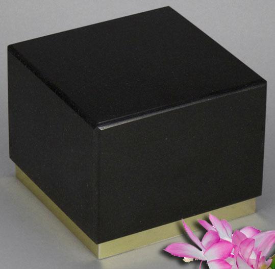 Die Innocence Black Granite Infant Urne wurde speziell für Ihren Liebsten entworfen und ist handgefertigt aus schwarzem Granit und mit einer Metallverzierung in Gold oder Edelstahl versehen. Diese Granit-Urne für Kleinkinder ist aus hochglanzpoliertem schwarzem Granit und verfügt über einen Bodenfilz zum Schutz der Möbel. Die Graniturne für Kleinkinder hat eine Bodenöffnung. Abmessungen: 4 x 5 1/4 x 5 1/4 Zoll. Fassungsvermögen: 100 Kubikzoll