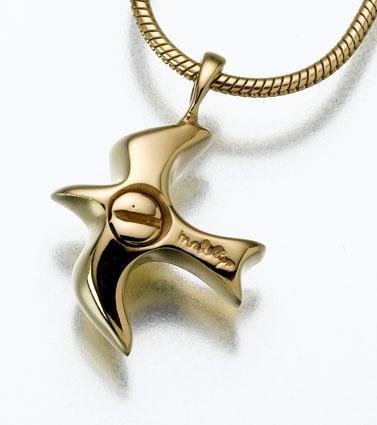 Urna con colgante de recuerdo de paloma en plata de ley, oro vermeil u oro amarillo o blanco de 14 quilates. Cada uno mide 3/4" de alto x 5/8" de ancho. Los restos de crema se añaden a través de una abertura de tornillo en la parte posterior. A cada colgante se le ha aplicado una capa de silicona, para evitar que se empañe. El brillo se puede restaurar utilizando una crema pulidora y un paño suave para colgantes de plata. Cada colgante incluye una atractiva caja de regalo de terciopelo negro, pegamento, tarjeta de cuidado, embudo de llenado e instrucciones, destornillador (si es necesario). (Se muestra con cadena de serpiente opcional)