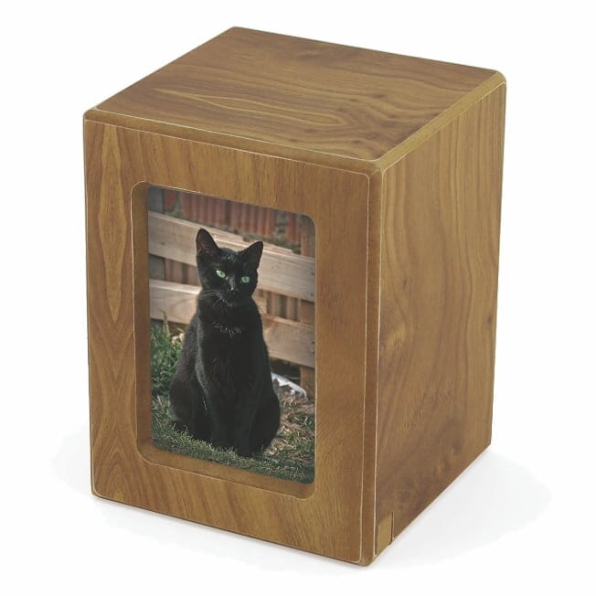 Solid brass engraved kitty face cat urn for ashes in matte gold finish—personalizable cat urns for ashes, heartfelt pet memorial keepsake.