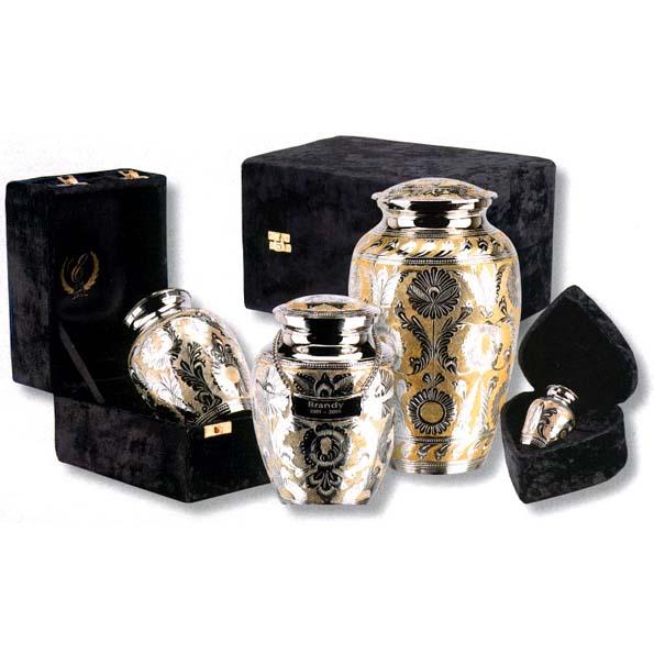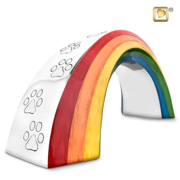 Classic Cuddle solid brass pet urn with gold and silver paw prints—small urn for dog ashes or cat urns for ashes, perfect pet memorial gift keepsake.