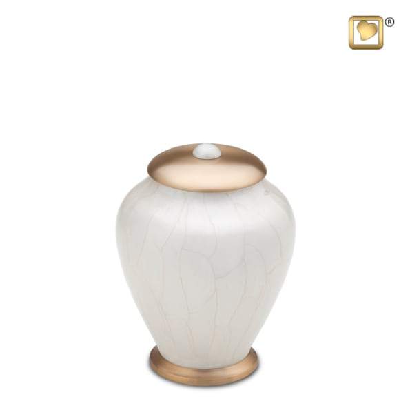 White heart-shaped solid brass pet urn with paw prints—keepsake urn for dog ashes or cat urns for ashes, premium pet memorial gift and small urn for ashes from Urns.com.
