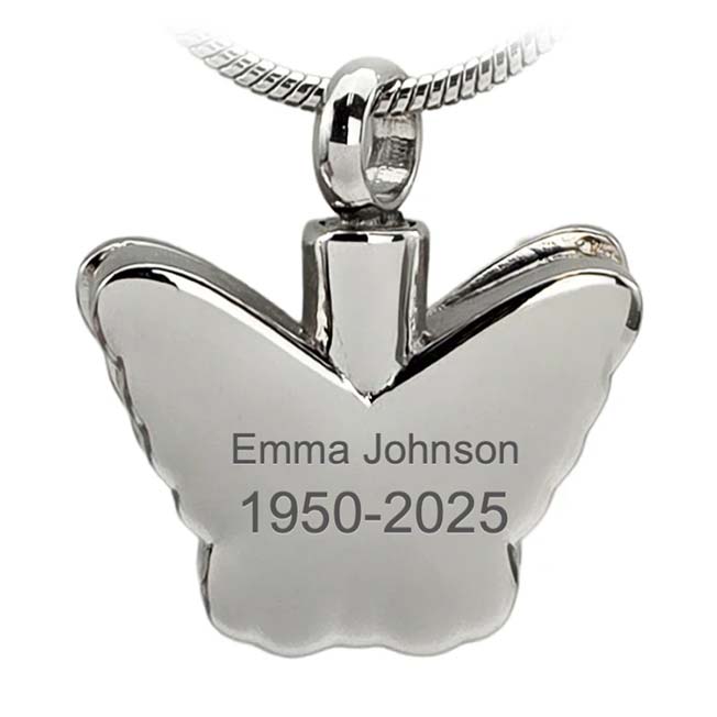 Sencilla pero significativa la Mariposa con Abulón El colgante de cremación de acero inoxidable es una magnífica manera de recordar y honrar la memoria de un ser querido que ya no está físicamente con usted.