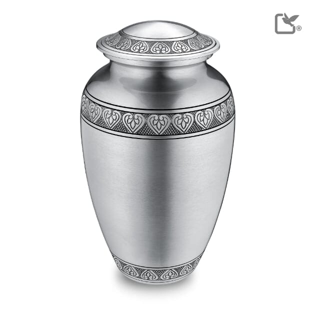 Elegant ivory ceramic urn with ornate embossed details and gold trim