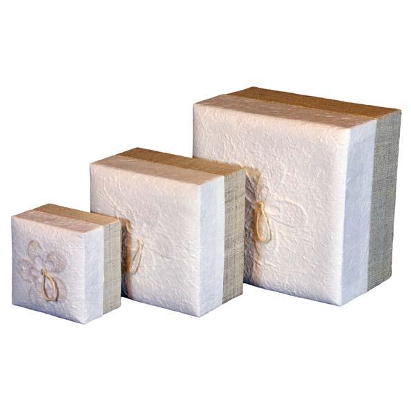 La urna biodegradable de cáñamo blanco cuenta con una base recubierta de cáñamo y una sencilla tapa de papel hecha a mano. La tapa de esta atractiva urna lleva incrustado un material floral elaborado a mano en forma de flor. Está diseñada para ser enterrada en el suelo. Una vez enterrada, se degradará naturalmente con el tiempo.