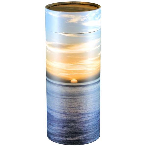 The Ocean Sunset Scattering Tube is designed and engineered to simplify the scattering process. The Scattering Tube is durable, dignified and simple to use. Each features a convenient removable lid and an industry-first, perforated "push in" tab that opens easily prior to scattering.