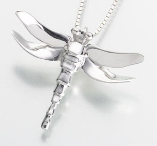 The Dragonfly Keepsake Urn Pendant comes in Sterling Silver or Gold Vermeil.It is a beautiful piece in our cremation jewelry collection.