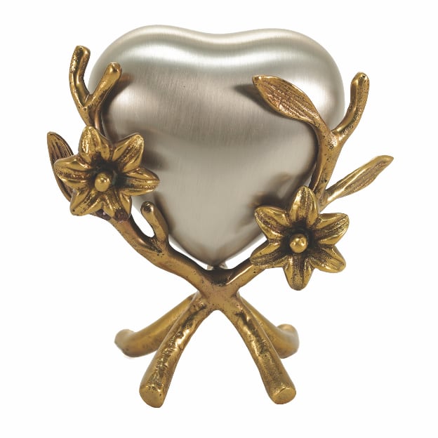 Bring a touch of nature and art to your home decor with the Windsong™ Lily Heart Stand in Bronze. This elegantly designed stand features lilies and leaves, making it a beautiful and unique display for some of our heart keepsakes (shown below). Create a special and meaningful resting place for your loved one's memories.
